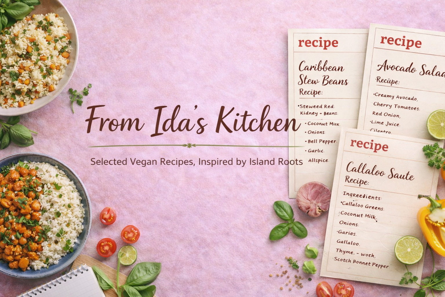 These recipes are inspired by the flavors of Belizean and Jamaican island cooking, thoughtfully reimagined using plant-based ingredients. Shared from Ida’s kitchen, they offer a seasonal taste of comfort, culture, and tradition.
